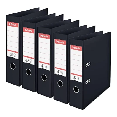 Esselte, A4 Lever Arch File, 75 mm Spine, 500 sheets Capacity, PP, Plastic Cover, No. 1 Mechanism, Files & Folders, Black, 5 Pack, 162570
