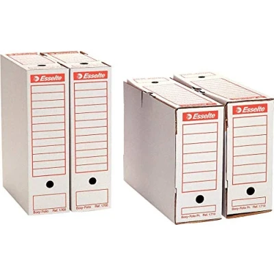 Box File, ideal for long-term storage of documents, contains up to 800 sheets (80g/m2), ideal for museums, file, libraries and offices Corrugated cardboard for long service life, acid free, 100% recyclable, FSC certified, meets the ISO 16245 Noma International for the long-term conservation of documents Lightweight, easy to move, perfect size for shelves, Horizontal or Vertical Side Label for easy identification of contents Quick and easy, ready to use in seconds, double locking tabs to prevent unintentional opening of the box and better protection of contents Content: 1 x 50 pack Esselte Box File Foolscap, acid free, white, 1700