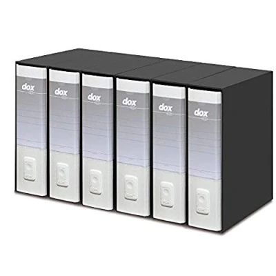 A4 size the dox cover gives stability - ensuring that the file "never falls over" and that contents are kept clean and secure Smart professional design, ideal for open shelving and front office Easy to store vertically or horizontally and to access via unique extra-stron pull tabs on the spine Reversible spine label in transparent pocket enables quick and easy identification Made from heavy weight recycled board covered with black embossed paper