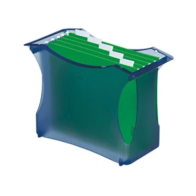 A simple way to store suspension files close to your desk and on the move Supplied with 5 Esselte A4 suspension files and tabs to get you started Can hold up to 15 A4 suspension files Carry handles to make it easy to transport Made from strong plastic with a transparent finish Supplied with 5 A4 Pendaflex files and tabs Capacity 15 A4 suspension files Two hand grips for carrying Stacks up to 5 high 390 x 190 x 270mm (WxHxD)