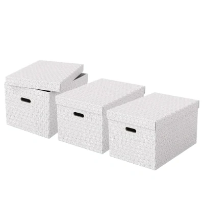 Esselte Large Storage Box With Lid, Pack Of 3, Home/Office & Organisation, 100% Recycled Cardboard, Recyclable, Geometric Design, White, 628286