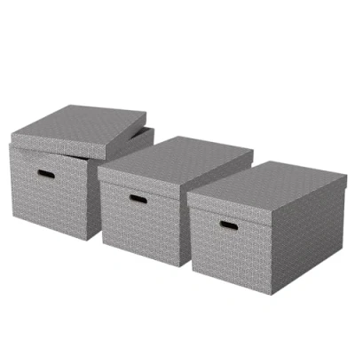 Esselte Large Storage Box With Lid, Pack Of 3, Home/Office & Organisation, 100% Recycled Cardboard, Recyclable, Home Geometric Design, Grey, 628287
