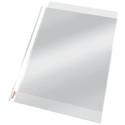 Plastic clear wallets, ideal for organising and filing A4 documents, compatible with lever arch files and ring binders, for home, school and office Document wallets for storing and protecting documents up to A4 format Universal 11-hole punching with perforated edge reinforcement for filing in folders and ring binders Indelible, top opening for easy filling and organisation Box contents: 1 x 100 Esselte standard document wallets in A4 format, colourless with glossy surface, top opening, 0.055 mm polypropylene film, 56066