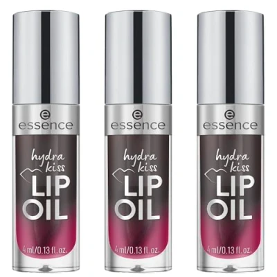 essence hydra kiss lip oil, gloss, no. 01, pink, moisturising, nourishing, with oils, shiny, radiant fresh, nanoparticles free, pack of 3 (3 x 4 ml)