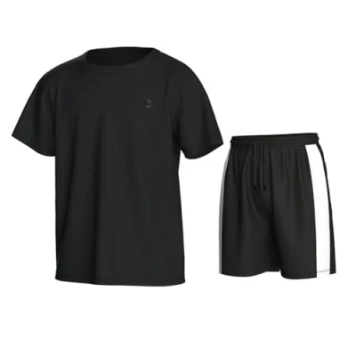 Essenclo Boys Athletic Shorts and Performance T Shirt Crew Neck Boy Clothes Set, Summer Kids Outfit Size 3 16 (2 Pcs Set) E1002 Black White 7 8
