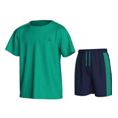 CLASSIC LOOSE FIT: Elevate your boy's athletic wardrobe with Essenclo high-performance shirt and short set, designed for maximum comfort and mobility. Loose fit and true to size, allowing for ease of movement during everyday activities. Refer to image section for size chart. LIGHTWEIGHT & BREATHABLE: Made of 90% Polyester and 10% Spandex for a lightweight, breathable, and stretchy feel. Plus, the soft 4-way stretch contrast side panels enhance mobility for a full range of motion. MOISTURE WICKING MATERIAL: Essenclo boys athletic clothing's moisture-wicking technology keeps you cool and dry no matter the activity. Perfect boys short sets for casual days at school, playing sports or active days running around outdoors. TAGLESS DESIGN: Enjoy a comfortable and casual fit with our tagless short sleeve crew neck tee and shorts with adjustable drawstring waistband design. VERSITILE & DURABLE: Mix and match your boy's look with various color and size set options available in our exclusive cloths for kid boys' short and shirt sets, boys athletic shorts, boys tank tops, and boys clothes.
