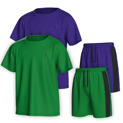 CLASSIC LOOSE FIT: Elevate your boy's athletic wardrobe with Essenclo high-performance shirt and short sets, designed for maximum comfort and mobility. Loose fit and true to size, allowing for ease of movement during everyday activities. Refer to image section for size chart. LIGHTWEIGHT & BREATHABLE: Made of 90% Polyester and 10% Spandex for a lightweight, breathable, and stretchy feel. Plus, the soft 4-way stretch contrast side panels enhance mobility for a full range of motion. MOISTURE WICKING MATERIAL: Essenclo boys athletic clothing's moisture-wicking technology keeps you cool and dry no matter the activity. Perfect for casual days at school, playing sports or active days running around outdoors. TAGLESS DESIGN: Enjoy a comfortable and casual fit with our tagless short sleeve crew neck tee and shorts with adjustable drawstring waistband design. VERSITILE & DURABLE: Mix and match your boy's look with various color and size set options available in our exclusive boys' short and shirt sets.
