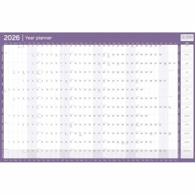 Style: Wall CalendarsSize: A1Open Height (mm): 580Open Width (mm): 870View: Year To ViewHanger Type: Free StandingBinding: UnboundWeek Starts On: Monday