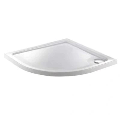 The Essential Alpha White Quadrant Shower Tray - 550mm Radius is ideal for compact bathrooms and en-suites. Made from durable ABS Stone Resin, it provides a reliable foundation, ensuring long-lasting performance. Its sleek white finish fits both modern and traditional styles. The curved front and quadrant shape make it perfect for corner installations, maximising floor space while maintaining a contemporary look. The 550mm radius offers a comfortable showering area without sacrificing design or practicality. Upgrade or design your bathroom with this tray for optimal style and efficiency. It includes a 90mm waste hole size and comes with a 25-year manufacturer's guarantee. Various size options are available.. Essential Alpha 800mm x 800mm White Quadrant Shower Tray - 550mm Radius ABS Stone Resin