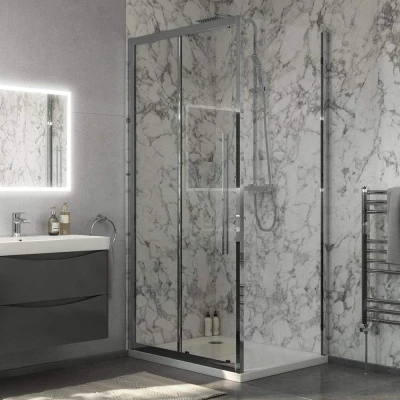 Essential Beta Side Shower Panel 900mm Silver Glass