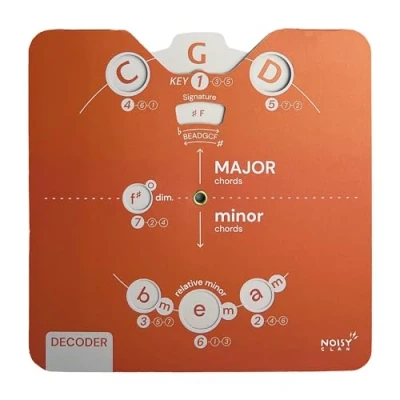 Unlock Songwriting Brilliance: Gain invaluable insights into chord selection and progression for captivating compositions. From theory basics up to song writing, this ebook download and tool will guide you through. The ultimate songwriting tool. Efficient Learning, Universal Power: Turbocharge your learning curve with cheats for chord structures, seamlessly expanding music theory. Universally applicable across instruments. Play piano, guitar, ukulele, bass, violin, trumpet, cello, keyboard, mandolin, guitarists, any instrument! Visual Finesse For Impact: Command attention with a visually stunning and unique wheel design. Simplified design for Keys, Chords, Notes, Majors, Minors, Diminished - No more confusion! Recommended for students all the way to teachers. Material Matters: Elevate your skills with a durable card tool for an enduring learning experience. Made from high quality FCS card stock, this Decoder Circle of Fifths Essential Edition gives you, well...the essentials! Musical Ally: Keep the compact Circle of Fifths tool in your gig bag for instant chord inspiration and progression guidance during spontaneous jam sessions with friends. Elevate your performance effortlessly, adding a touch of musical finesse to every impromptu gathering. Play More, Learn More: With your Noisy Clan product, you’re not just buying gear — you’re invited to join a learning community. Every package includes access to step-by-step guides, free book downloads, printables, and access to a music community to help you play more. Back to School Music Supplies: Start the school year strong with music learning tools that make theory easier and practice more effective. Ideal for students, teachers, and homeschoolers looking to stay organized and ahead this term.