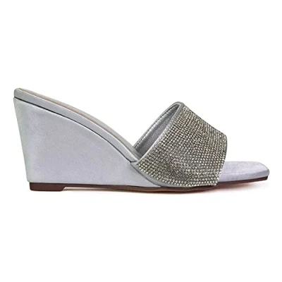 ESSEX GLAM Womens Diamante Low Wedge Heels Ladies Sparkly Square Toe Silver Slip On Mules Size 4