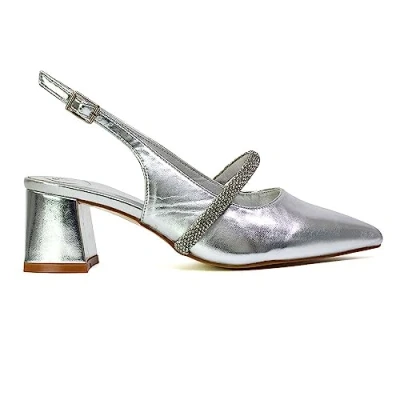 Stunning Block Low Heel Slingback Pointed Toe Bridal Courts Shoes With Elegant High Shine Diamante Cross Strap These Classic Women's Back Strap Bridal Shoes Are Perfect Match For Looking Great!! Perfect For Every Outfit: With the shoes, you can put a perfect finish on any outfit for casual, party, work, date, wedding, cocktail, nightclub, homecoming or other special occasions. Ideal For Bridal, Bridemaid, Wedding, Party, Prom, Evening & More Heel Height 2 Inches / 5 CM Block heels for women slingback strappy pumps designed with a slingback strap and sparkly rhinestone mary jane strap, offer a perfect fit while exuding effortless elegance
