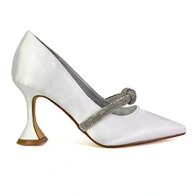 Womens Elegant Slip On Satin Heels With Diamante Detailing These Stunning Satin Heels Are Perfect For Brides, Bridesmaids & Wedding Guests! Heel Height 3.5 Inch / 8.5 CM Perfect For Formal Events, Work, Weddings, Evenings More Available In Black Satin, Green Satin, Ivory Satin, Red Satin & White Satinn
