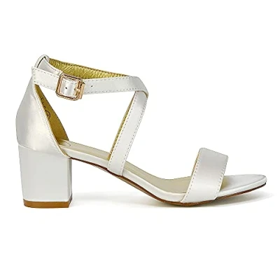 ESSEX GLAM Womens Strappy Sandals Block Mid Low Heel Ladies Ankle Strap Party Evening Shoes Size 3 8 (7 UK, Ivory Satin, numeric_7)