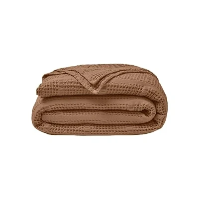 ESSIX Jacquard Honeycomb Bedspread Cotton Yogi, Almond, 260 x 240 cm