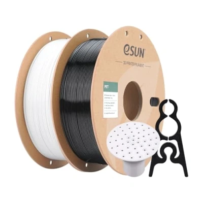 eSUN PET Filament 1.75mm, High Toughness, 1KG (2.2 LBS) per Spool, 2 Reels Printing Materials for 3D Printers,Black+White