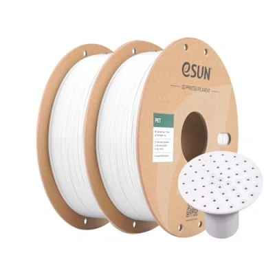 eSUN PET Filament 1.75mm, High Toughness, 1KG (2.2 LBS) per Spool, 2 Reels Printing Materials for 3D Printers,White+White