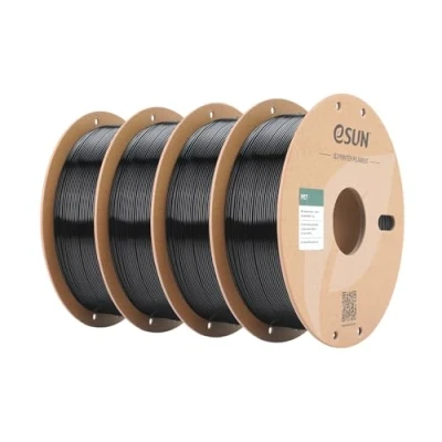 eSUN PET Filament 1.75mm, High Toughness, 1KG (2.2 LBS) per Spool, 4 Reels Printing Materials for 3D Printers,Black