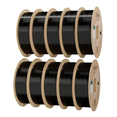 【PLA+ 10KG Bundle】PLA+ 10KG set provides cost-effective options for your large-scale printing projects; Also, it contains multi-color combinations, allowing you to freely combine and print richer and more creative works. 【Good Printability】PLA+ keeps all the advantages of PLA, easy to print, low shrinkage, no deformation, no cracking, high printing precision. Good layer bonding performance meets your demands for printing functional parts with higher toughness. And it also keeps outstanding performance at high speeds. 【Dimensional Tolerance +/- 0.03mm】eSUN PLA+ 3D printer filaments are produced with more precise specification. Minimum tolerance and low warping to ensure consistent feeding and stable prints, no bubbles, less stringing, extremely high printing successful rate. 【Tangle Free & No Plugging】Total Length: 340-350m. Full 1KG 3D printer filament reel, perfect roundness and very tight diameter tolerance, good winding, does not overlap or tangle. Melt well, feed smoothly and constantly without clogging the nozzle or extruder. 【High Compatibility】Compatible with Most of FDM 3D Printers, such as: Prusa, MakerBot, MK3, Ender 3, Raise3D etc. And it also meets the demands for high-speed printers such as Bambu Lab X1 and P1P/AnkerMake M5/FLSUN V400/voron 2.4/K1. Widly used in machinery, electronic appliances, automobiles, decorations and COSPLAY. 【Vacuumed Sealed Packaging】eSUN filament comes in a sealed vacuum bag with a desiccant bag, easily keep your 3D printer filaments at an optimal storage condition and free from dust or dirt before opening the vacuumed sealed packaging.