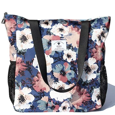 ESVAN Original Floral Water Resistant Large Tote Bag Shoulder for Gym Beach Travel Daily Bags