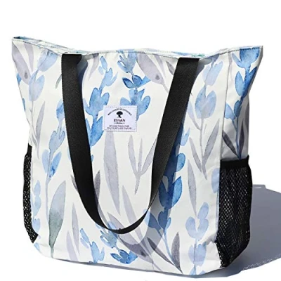 ESVAN Original Floral Water Resistant Large Tote Bag Shoulder for Gym Beach Travel Daily Bags Upgraded, [F] Leaf, L