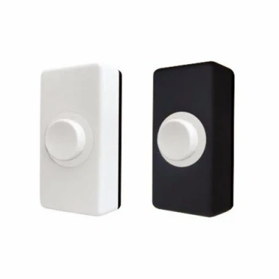 The Eterna BPWB Wired Surface Mounted Bell Push is ideal for classic domestic use with hard wired door bell systems powered by a transformer. This simple yet sturdy product is an ideal replacement switch for an existing Door Bell system or as an additional switch for multiple entryways. Comes with interchangeable black and white covers made from high impact polycarbonate. This product is designed for domestic installations of up to 15 meter range Main Features: Easy to install Interchangeable Black and White covers Concealed Fixing holes Non-Illuminated Technical Specification: Colour: White Black Dimensions: 55mmx28mmx18mm Type: Hard Wired Range: 15M from Receiver Illuminated?: No Includes 1 Year Guarantee