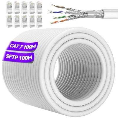 ⚡ Ethernet Cable 100m - The Cat 7 Internet Cable 100m long, each cable is marked with the corresponding length and is neatly arranged, so you don't need to worry about the cable being scattered after receiving it. When you buy this cable, it can be cut to size and comes with gold plated RJ45 connectors for you, eliminating the waste of extra cables, and it can be used as a spare cable for your home, office, school, shopping malls, supermarkets and more. ⚡ Ethernet Cable High Speed - Network Cable Cat 7 supports up to 600MHz bandwidth and 10Gbps data transfer speed, which is 10 times faster than Cat 6 Ethernet cable. It ensures efficient transfer of cloud storage data, fast download of server applications, smooth and delay free online gaming, buffer free online video 4K Ultra HD, etc., allowing you to enjoy ultra high speed, which is one of the most popular network cables in the world. ⚡ Ethernet Cable Shielded - Patch Cable Cat 7 consists of 4 pairs of shielded twisted pair foil wires (S/FTP 4PR). Compared to Cat 6 cables, its excellent immunity to interference and signal attenuation protects you from electromagnetic interference. Each cable is paired with 10 nickel plated RJ45 connectors, and the metal RJ45 connectors form a set of shielding units with F/STP. The shielding only works if the entire cable is shielded and both ends are properly grounded. ⚡Ethernet Cable Cat 7 - LAN Cable Cat 7 is made of high quality PVC material (GVERIFIED TO PVC), UV resistant, waterproof, high temperature resistant outer wrapping makes it resistant, better performance, easy to adapt to the external environment and prolong the service life. 24AWG, 6.2mm transverse OD, easy to pass through the corners, providing you with optimal cutting, cabling, and other advantages. Optimised cutting, wiring and installation experience. ⚡ Worry Free Purchase - Soibke pursue reliable quality and customer satisfaction, if you have any questions about Wifi Cable Cat 7, please feel free to contact us, we will reply you as soon as possible. Your trust is our biggest encouragement, please click the yellow shopping cart for risk-free purchase. * Note: If there is not enough header when you use it, please contact the seller in time. In order to prevent the phenomenon of poor connection when using other RJ45 connectors.