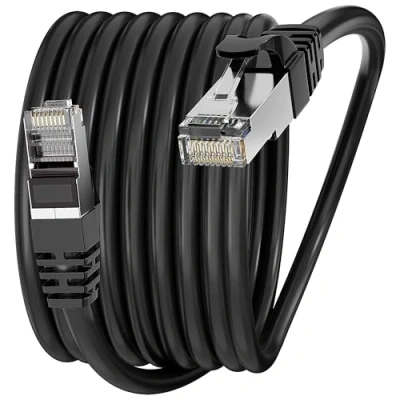 Ethernet Cable 12m, Long Internet High Speed Cat 6 FTP Shielded, 23AWG Network 12 meter Black 10/100/1000Mbps, Lan For Home/Router/Switch