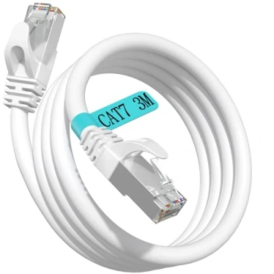 Ethernet Cable 3m, White Cat 7 Internet High Speed Network 600MHz 10Gbps Shielded Wifi Cabls 24AWG Patch Cables RJ45 LAN Outdoor Wlan for PS5/4 Router Modem