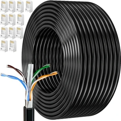 Ethernet Cable 60m, Cat 6 Bulk Internet 60 Meters, Shielded FTP 23AWG External Lan Extra Long High Speed Network Rj45 Patch Black