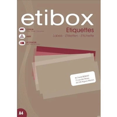 ETIBOX 119770 6500 Labels 38x21.2 mm Printers: Laser, Copiers, Inkjet Straight Corners.