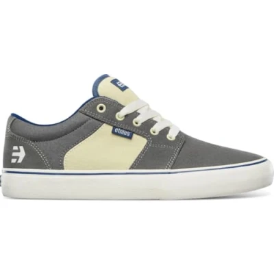 Supereight* Etnies Barge LS is a simple, deconstructed shoe with a classic skate look but comfortable enough to wear all day every day * One of Etnies' best sellers this shoe is over course available in many colours and fabrications * Grey suede upper with an off-white canvas mid-panel, navy details and a white & gum sole unit * Foam lite 1 insole, matched with a vulcanised sole unit for a great board feel * Clean one-piece toe vamp * Slim style design * Light padding in the collar and tongue
