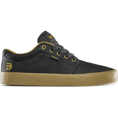 * Etnies Barge LS is a simple, deconstructed shoe with a classic skate look but comfortable enough to wear all day every day * One of Etnies' best sellers this shoe is over course available in many colours and fabrications * Washed black uppers with brown details above a gum sole unit * Foam lite 1 insole, matched with a vulcanised sole unit * Clean one-piece toe vamp * Slim style design * Light padding in the collar and tongue