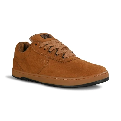 * Etnies Joslin shoe is Chris Joslin's first signature model with Etnies, featuring advanced performance and stability, from a simple classic design. * Sporting a brown suede upper with brown detailing and a black and gum sole unit. * Designed and tested by Chris Joslin * Pro Foam 1 Polyurethane insole, and an STI Evolution Foam midsole. * Michelin performance rubber outsole with flex grooves. * Beefy car tire inspired tread designed for maximum durability. * One-piece toe for reduced stitch blowouts. * U-throat that keeps the upper together and a hidden toe cap that extends into the ollie area for increased durability. * Padded tongue and collar lining, coupled with elastic tongue straps for a locked-in, superb fit. * Hidden lace loops with inset eyelets for added lace protection.