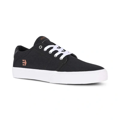 * The Etnies Barge Slim is a simple, deconstructed shoe with a classic skate look but comfortable enough to wear all day every day * One of Etnies' best sellers this shoe is available in many colours and fabrications * Black canvas upper with white laces and a white vulcanised sole * Foam lite 1 insole for comfort * Elastic tongue wings * Clean one-piece toe vamp * GeoHex tread pattern for enhanced grip