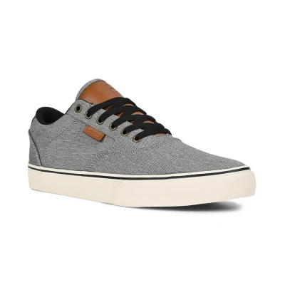 * Grey heathered canvas upper, with brown detailing, finished with a white and black sole