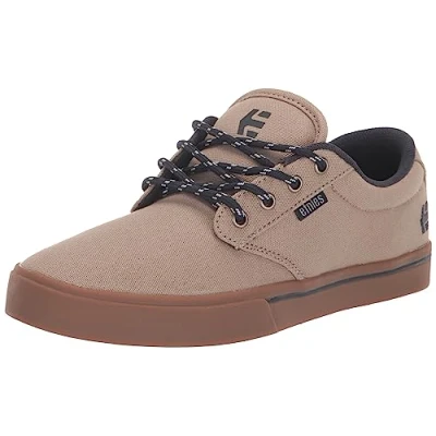 * The Etnies Jameson 2 Eco is one of Etnies' all-time classic shoes, made from a recycled rubber outsole and is part of the Etnies "buy a shoe, plant a tree" program * Light brown canvas upper construction, with navy detailing atop a gum sole unit * Clean low top silhouette and features a "faux vulc" cemented cupsole with Foam Lite 1 insole footbeds * Thin padded tongue and collar * 20% recycled rubber outsole * Internal EVA midsole * Vegan