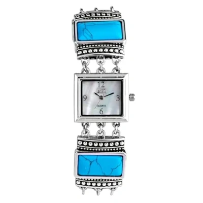 Eton Ladies Analogue Vintage Quartz Watch, Mock Stone Bracelet 3258L (Turquoise, Black, Jasper) (Turquoise)