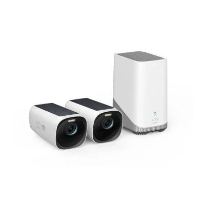 CurrysKeep watch over your home with this Eufy security camera system. The two cameras film in 4K Ultra HD resolution with colour night vision, so you'll get a crystal-clear look at faces and number plates, even at night. BionicMind facial recognition can tell the difference between family and strangers, so you won't be spammed with alerts when it's just your kids at the door. And with the integrated solar panels you get enough power to keep the cameras running all day from just 2 hours of direct sunlight. Good to know - It comes with the HomeBase 3 hub included, so you can get everything up and running straightaway- Connect the cameras using WiFi and you'll get smartphone notifications and daily security briefings - Set Activity Zones around your home and avoid false alarms, like when it's just your dog playing with their toys - To scare away threats, there's an integrated spotlight and loud siren that gets triggered by motion or noises- Use the 2-way audio to tell the delivery guy where to leave your parcel without getting off your sofa - It works with voice assistants, so you can just ask Alexa or Google Assistant to show you who's at the front door - The cameras are easy to set up and are weatherproof too, so they'll keep on working even in the rain and snow - The hub includes 16 GB storage built in, and you can expand it with an external hard drive (sold separately)