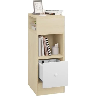 Ample Storage Space: The bedside table is designed with 2 open compartments and a tabletop that offer more space to keep desired items at hand. In addition, the 17x24x11.5 cm moisture-proof drawer can hold personal items Small Footprint: The narrow and high bedside table measuring 25x30x66cm does not take up too much floor space but offers an ideal storage solution in tight spaces. The semi-open bedside table can be placed on the right or left side of the bed Versatile: Featuring a simple, modern design, the space-saving cabinet in classic white is a practical and decorative addition to your furniture. You can use it as a night table, living room side table, display cabinet. High Quality: Made of 15mm thick chipboard (class E1) and coated with melamine veneer, the sturdy and stable nightstand has a long lifespan and a smooth, wear-resistant surface that is easy to clean with a damp cloth Easy Assembly and Moving: We offer the detailed illustrated manual and numbered accessories to help you assemble the compact bedside table with ease. Once assembled, the 8.7kg bedroom bedside table is easy to move anywhere