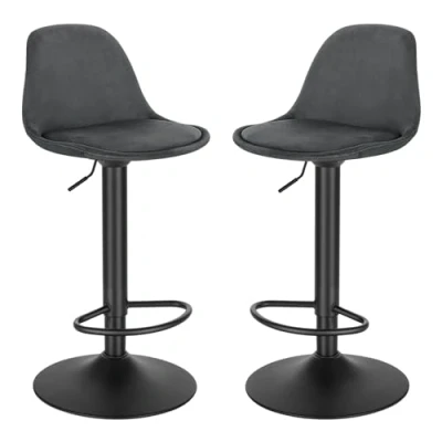 EUGAD Swivel Bar Stools Set of 2 Height Adjustable Stools, Breakfast Chairs Kitchen Velvet Barstools with Footrest, Backrest, Metal Base, High Dark Grey, 1051BY UK