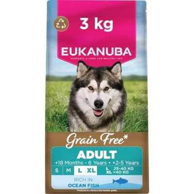 Eukanuba Grain Free Ocean Fish Complete Dry Dog Food For Adult Large & Giant Breed Dogs 3KG