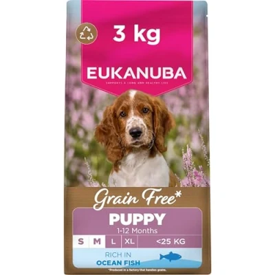 Eukanuba Grain Free Ocean Fish Complete Dry Puppy Food For Small & Medium Breed Dogs 3KG