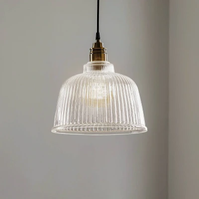 Euluna Leana pendant light, clear glass, 1 bulb, antique brass