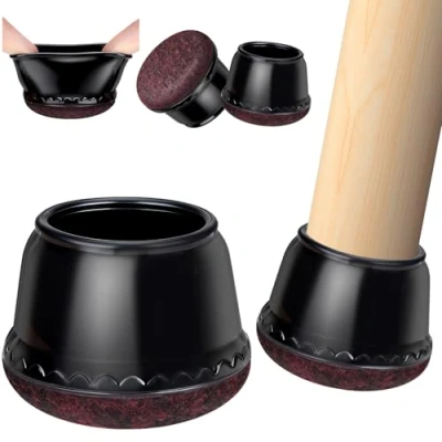 Scratch & Damage Protection: The chair leg protectors combine an integrated felt bottom that provides a durable barrier with soft TPE cushioning to effectively protect hardwood, tile, laminate, and other delicate flooring from scratches, dents, and scuffs Eco-friendly TPE Material: Crafted from eco-friendly and recyclable TPE material, free of BPA and harmful plasticizers, these chair leg covers are safe for homes with children and pets Felt Stays Secure: The felt base of these chair feet floor protectors is integrally molded and securely bonded to the leg cover, ensuring it resists shedding and protects your floors from accidental Scratches Easy Installation & Universal Fit: The soft, flexible design allows these chair leg floor protectors round to slip on effortlessly. The stretchable TPE material then conforms to provide a secure fit on most standard leg shapes and sizes Noise Reduction & Enhanced Stability: These chair leg caps feature a soft TPE and felt construction that absorbs impact and reduces sliding noise during movement, while also providing improved grip and stability on smooth surfaces for a quieter, safer home environment