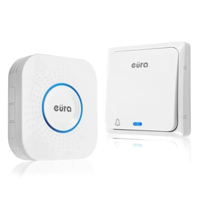 NO BATTERIES REQUIRED The bell button works without batteries on the same principle as a bicycle dynamo. Long range and strong signal: wireless connection range of up to 100 m and does not interfere with other devices in the home. Extra wide range of ringtones: 58 freely selectable melodies and 4 adjustable volumes from 0 to 85 dB. The bell receiver also flashes in blue with each ringing and thus also gives a virtual notification. An excellent function for the hearing impaired. Waterproof and weatherproof: the bell button is IP55 protected and can withstand heavy rain and temperatures from -18°C to 40°C. Easy installation: attach the bell button to the wall or door frame with the included screws or mounting tape and simply plug the bell receiver into an electrical outlet., Manufacturer: Eura-Tech