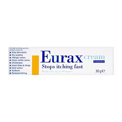 UP TO 10 HOURS OF ITCHY RELIEF - Eurax Cream provides effective, long-lasting relief from itchy and irritated skin WORKS ON A RANGE OF ITCHES AND IRRITATIONS - Eurax Cream alleviates itching and irritated skin caused by dry eczema, dermatitis, chickenpox, allergic rashes, insect bites and stings, heat rash, nettle rashes and hives NON-GREASY AND QUICK ABSORBING - The formulation has been created to be non-greasy and quick absorbing to let you get on with your day comfortably CLINICALLY PROVEN AND EXPERTLEY FORMULATED - Eurax Cream has been formulated with the anti-itch ingredient Crotamiton, to help stop itchy and irritated skin, leaving it soothed HOW TO APPLY - Clean and dry the affected area of the skin before applying Eurax Cream, Apply a thin layer of the cream to the affected skin and gently rub it in until it is absorbed, wash your hands after applying the cream, unless your hands are the affected area