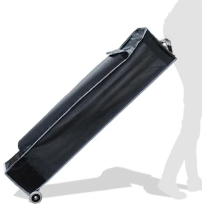 Storage: When your canopy is not in use, you can conveniently store it in the roll bag to keep all the components together and ready for the next event. It is a valuable accessory that provides storage space and organization, enhancing the overall functionality and convenience of your pop up canopy. DURABILITY & PROTECTION Made of high strength polyester, this canopy tote bag is built to last. It is wear-resistant and easy to clean to ensure your canopy stays in pristine condition. 【Adaptable Size】This canopy roll bag is specially designed for 10x10 canopy frames, which are smaller than 11x11x63 inches when closed, providing a perfect fit for different canopy models. Whether you have a standard or compact frame, this bag will do the job. Additional storage space: uniquely designed spacious front pocket allows you to store all your canopy accessories with ease. Whether you have pegs, guy ropes, side walls or other essentials, there's room for everything. EASY TRANSPORT Equipped with heavy duty wheels mounted on a sturdy solid aluminum plate. This design ensures easy portability and smooth transport. Whether you are moving your canopy at a party, sporting event, conference, trade show or flea market, you will do it effortlessly. Please note that the base is not fully enclosed.