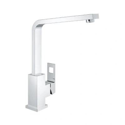 Grohe Eurocube Single Lever Sink Mixer - Chrome With its simple aesthetic composed of straight lines and right angles, this GROHE Eurocube range kitchen tap brings a touch of character to your kitchen design. Presented in the hard-wearing yet dazzling GROHE StarLight chrome finish, it will retain its flawless looks for years. Visually appealing and convenient at the same time, the high spout allows you to easily fill or wash tall pots, making it user-friendly as well as easy on the eye. The 360° swivel range means you have plenty of room for manouevre. The GROHE SilkMove technology is built in to let you vary water temperature and flow with ease and precision. And our easy installation system means fitting this sink mixer is fast and trouble-free. Celebrate the perfect square. High spout Monobloc installation Grohe StarLight finish Grohe SilkMove 28mm ceramic cartridge Mousseur Swivel cast spout Swivel area 360º Flexible connection hoses Rapid installation system Genuine brand new Grohe product, covered by a Grohe manufacturer's guarantee.